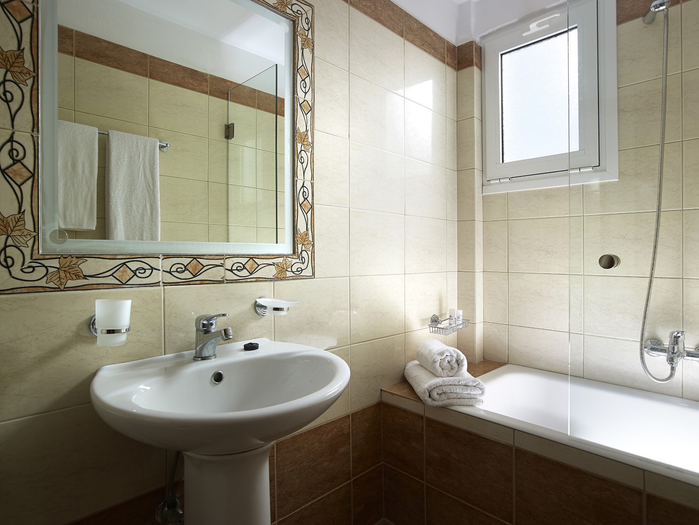 The private bathroom is equipped with crystal shower cabin, hairdryer, and free toiletries.