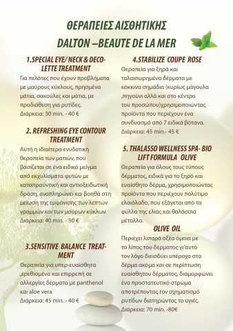 Посетители могут насладиться расслабляющим или лечебным массажем и посувствовать положительный эффект для тела и духа в специальных эстетических кабинетах Иерапетры.
